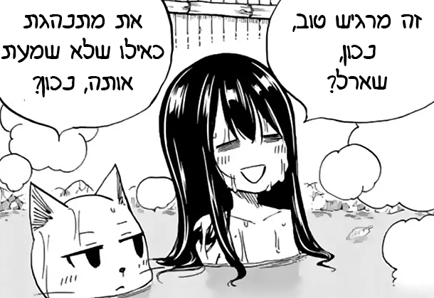 לפני שנגיע לעניין, מי ששם לב ברשתות החברתיות שלנו… פרסמתי סקר שישפיע מאוד על ספיישל ראש השנה בפן של פיירי. כפי שאתם כבר הבנתם, עכשיו אנחנו מסיימים לגמרי את ארק המבוך, ולאחר הארק הזה יש 3 צ’אפטרים יחסית פילריים שהם יותר כזה החיי יומיום של פיירי טייל, שאותם בוודאות תקבלו בספיישל. אבל – צצה לי התלבטות מה יהיה הצ’אפטר הרביעי, פחות רציתי עכשיו להתחיל להיכנס לארק הבא כשיש מצב שאעצור אותו באמצע בגלל שאני מתחילה עוד חודש את לימודי התואר הראשון שלי ושנה ראשונה בתואר תמיד מאוד עמוסה, וחמישי הבא אני גם טסה לשבוע וקצת ככה שגם אז כמובן לא אעבוד על שום דבר שקשור למנגה. לכן… אמרתי שאתן לכם או עוד צ’אפטר פילרי מהצ’אפטרים שאחרי הארק הבא (הארק של גולד אוול, גילדת האלכימאים שסאי ההזוי חלק ממנה ומה שנראה ומתנהג כמו גוד סרנה) או כן לתת לכם צ’אפטר מתוך הארק של גולד אוול, אבל משלב די מתקדם שלו, כי מאוד הייתי רוצה שגם אתם תחשפו כמוני לעבר של ג’לאל, זה היה מאוד מרתק.